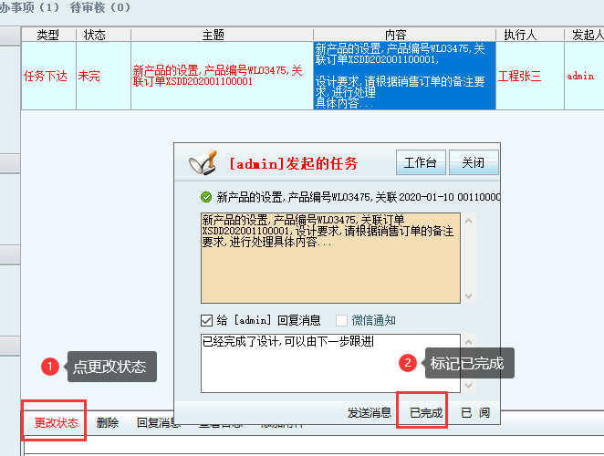 2.3在工作臺詳情里,可以詳細的看到當前工作的內容進度和詳情說明