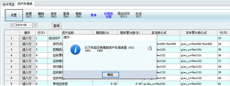 例如:出現(xiàn)該提示表示有科目未設(shè)置到報表公式中,因此必須把該科目的數(shù)據(jù)設(shè)置到報表的取