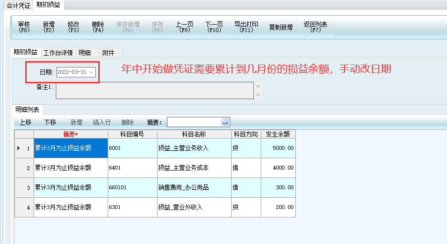 注:年中啟動賬套,比如4月開始做賬,1-3月的發(fā)生額余額如何累計到利潤表的本年累計數(shù)?
