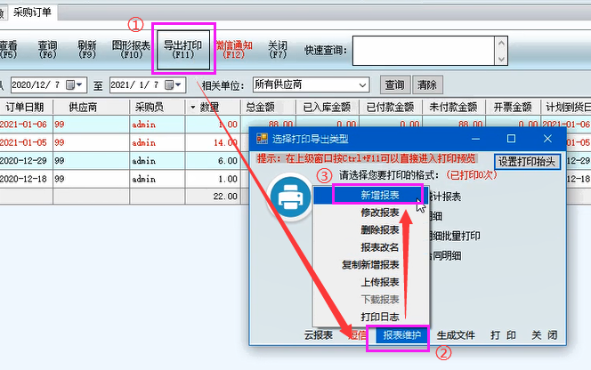 修改方式:導出打印-報表維護-報表改名-加上“明細”-確定