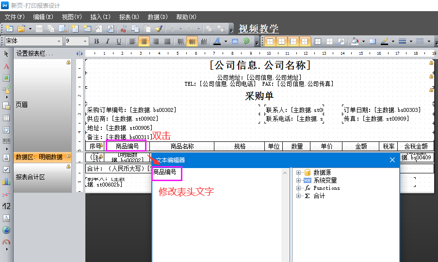 首先點“設置報表欄-添加-選擇數據區”,接著雙擊左邊數據區,選擇數據源。