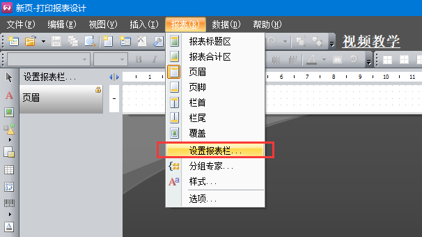 7、然后在頁面這個區(qū)域設(shè)置好報表的抬頭,方法可打開動態(tài)教學(xué)參考