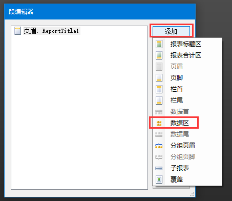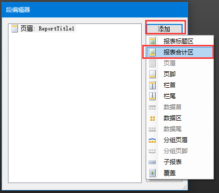 5、再點擊添加-報表合計區(qū),然后點擊關(guān)閉。