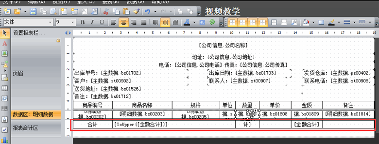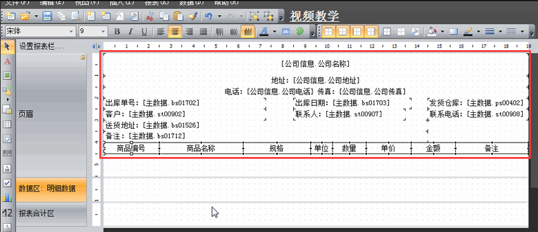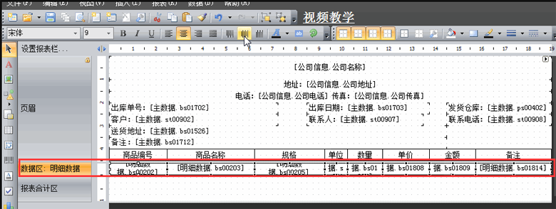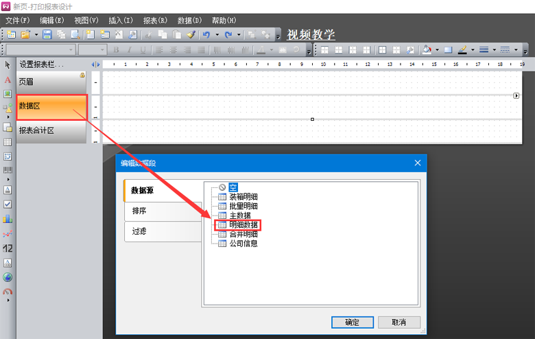 8、然后設(shè)置好數(shù)據(jù)區(qū):明細數(shù)據(jù),方法可打開動態(tài)教學(xué)參考