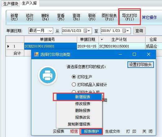 1、點擊菜單欄導出打印-報表維護-新增報表