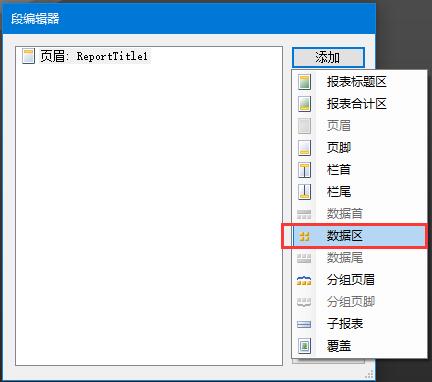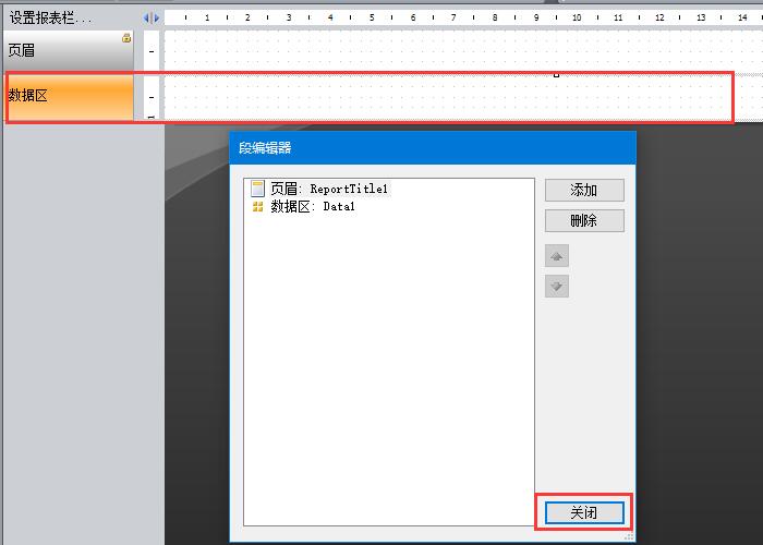 4、點擊添加-數據區,然后可以看到頁面多了一個數據區,然后點擊關閉