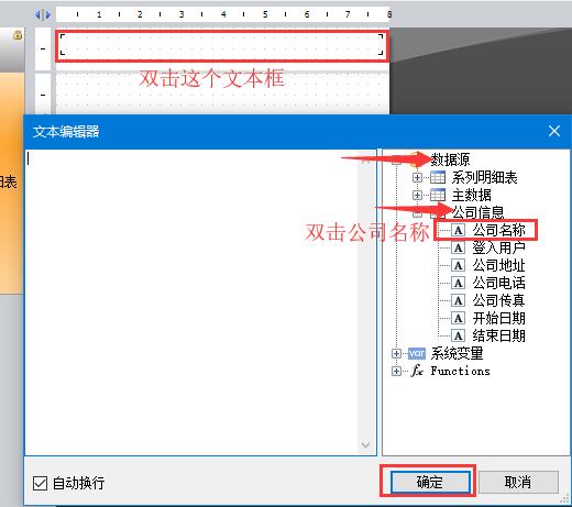 10、雙擊文本框,在彈出的窗口中雙擊公司名稱,然后點擊確定