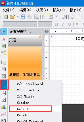 11、點擊左側工具欄的條碼工具,點擊Code128,然后把條碼放在合適的位置