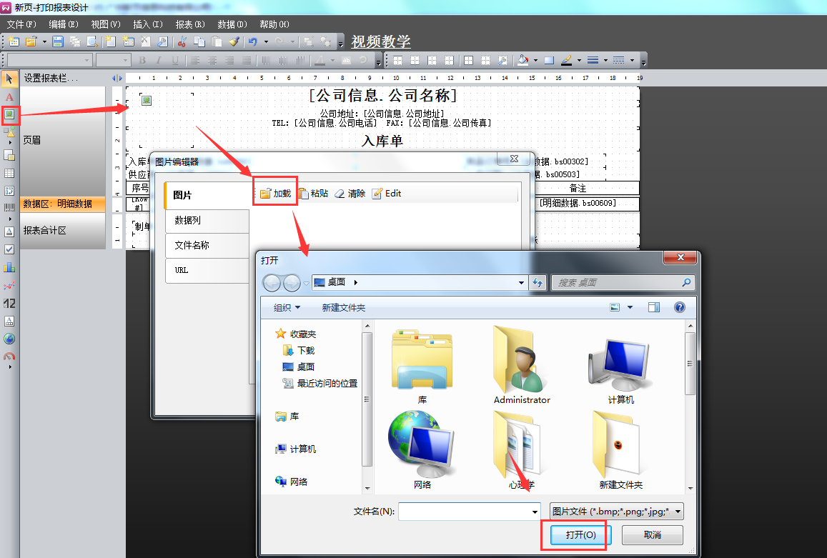 2、添加圖片—點擊---加載----選擇圖片---打開