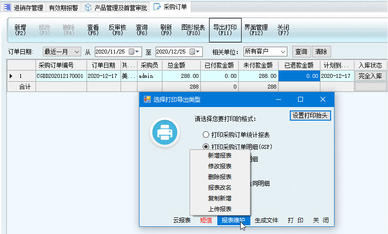 1、點擊菜單欄導出打印-報表維護-修改報表