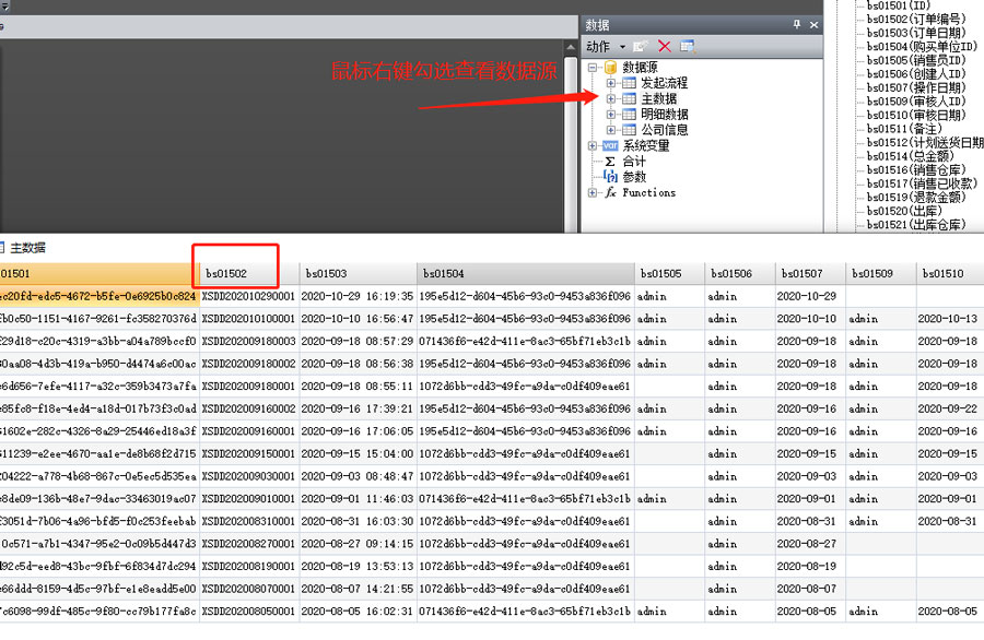 第一種:在修改報表界面的右邊,根據字段備注找到對應的字段。