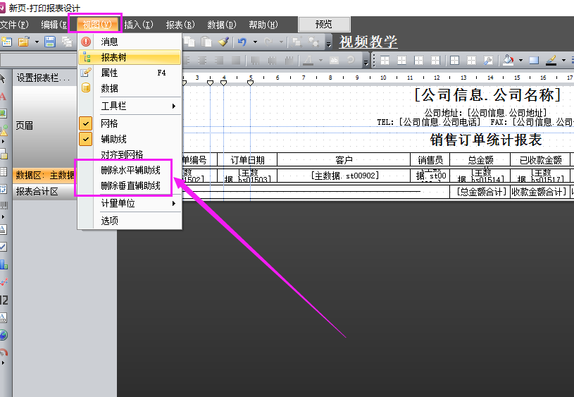 2、可以點擊視圖,點擊刪除水平輔助線或刪除處置輔助線,即可刪除。