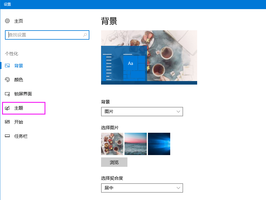 2、在左側選擇主題選項。