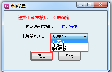 2、在彈出的窗口中選擇手動審核,然后點擊確定