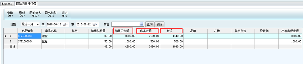 這四個報表都可以統計毛利,毛利是按照商品的實際出庫數量來統計的,