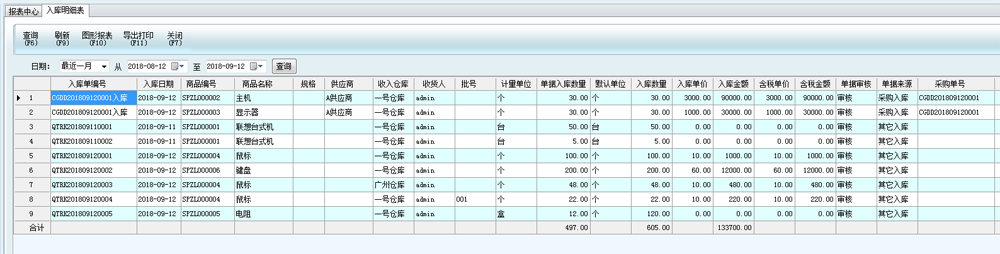 入庫明細表可以查詢庫存的來源,出庫明細表可以查詢庫存的去向