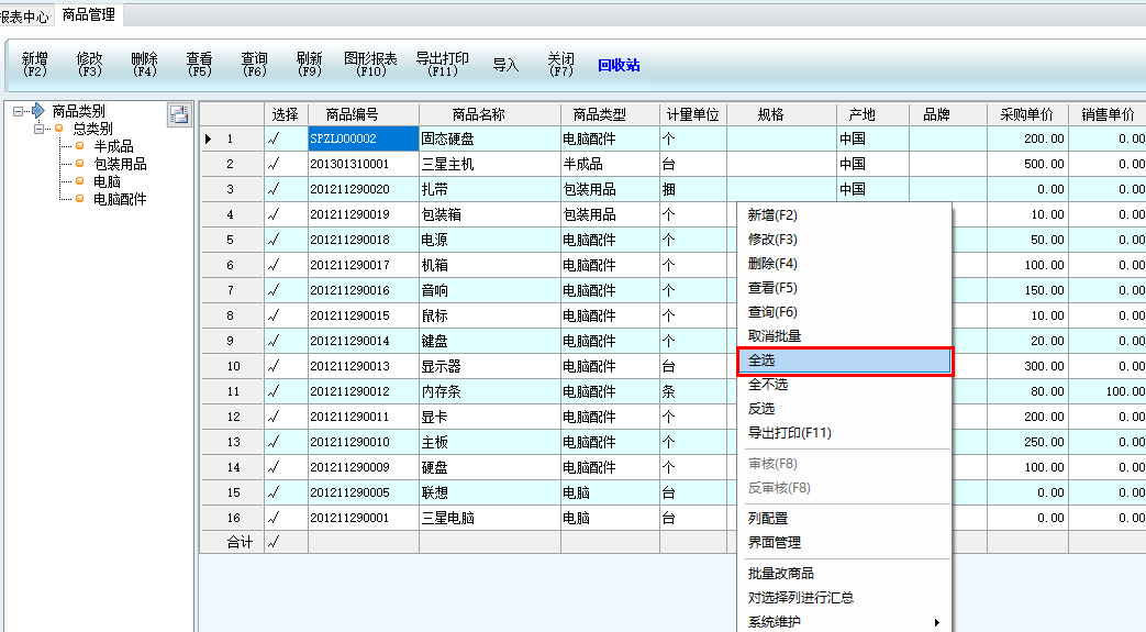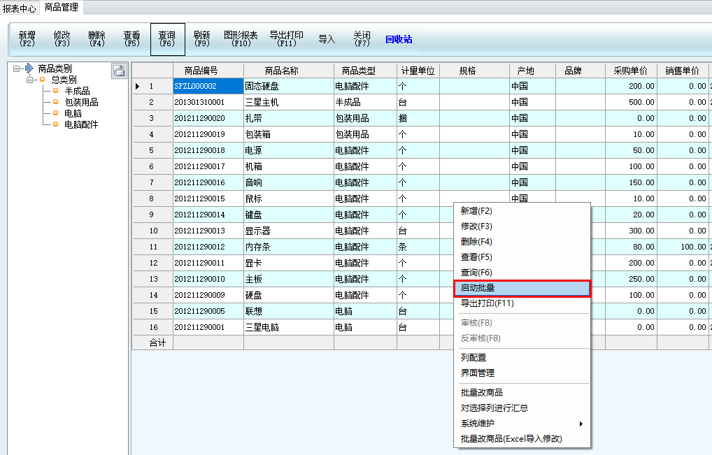 打開商品管理,右鍵啟動批量,選擇要修改的商品,如要全選則再次右鍵選擇全選。