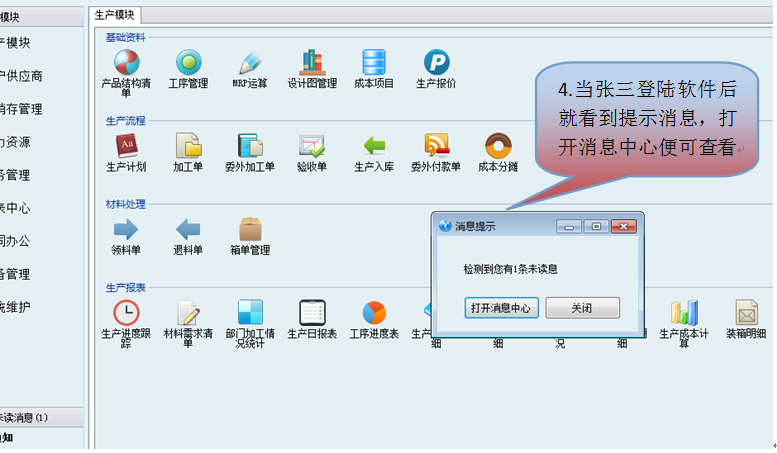 比如下達采購訂單后,管理員通知相關采購員執行采購