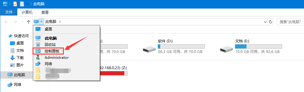 1、打開我的電腦/此電腦,選擇控制面板,如下圖