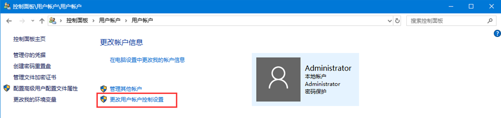 4、點(diǎn)擊更改用戶賬戶控制設(shè)置