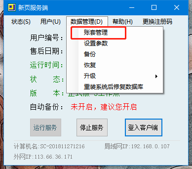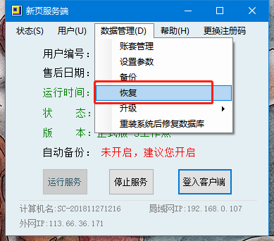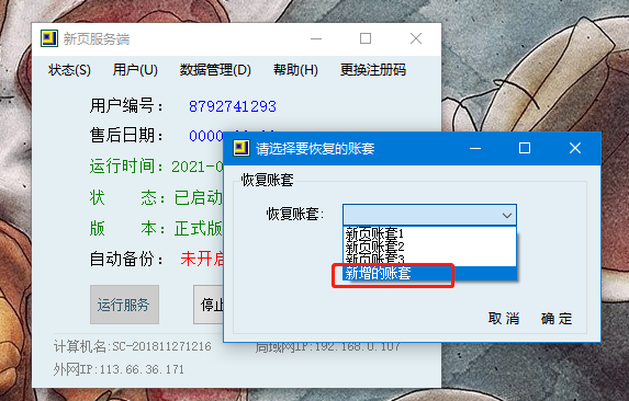 備份完成后,在新增的空白賬套中恢復這個賬套的備份。
