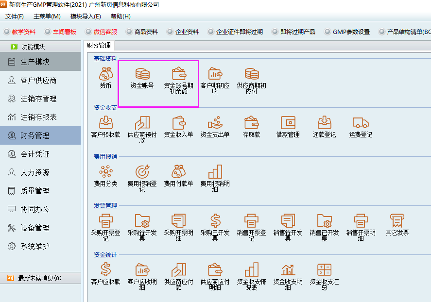 ①在【財務(wù)管理】-【資金賬號】里面創(chuàng)建好收付款賬號,比如工行xxx,建行xxx,現(xiàn)金等