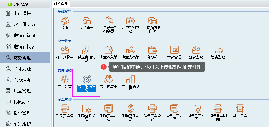 ①在【財務(wù)管理】-【費用分類】創(chuàng)建好各種費用分類