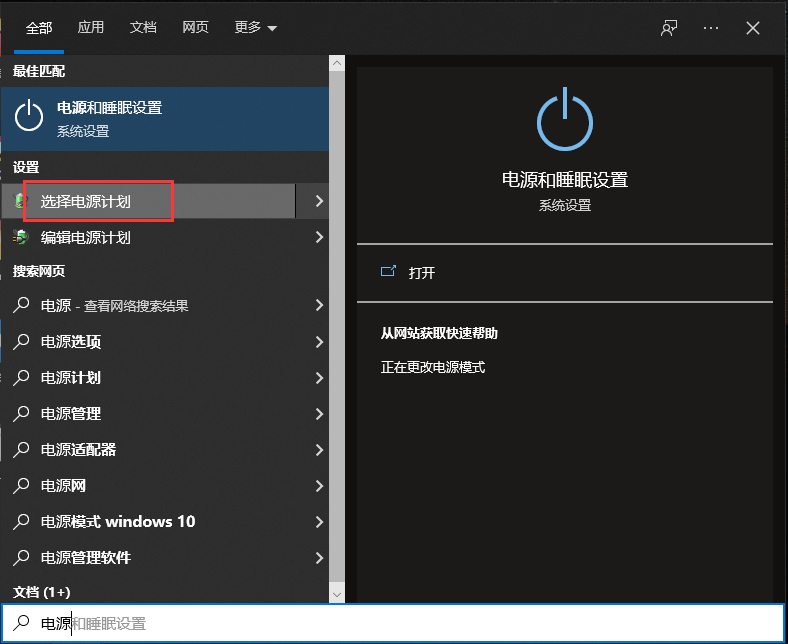 1.右鍵開始菜單——搜索——輸入“電源”——選擇電源計劃