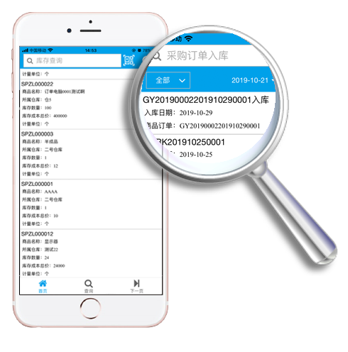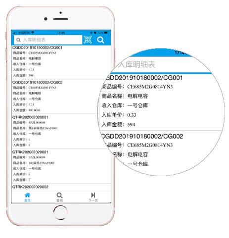 2、查詢庫存、出入庫登記等操作,及時反映物資的倉儲情況,各類報表、財務狀況、應收/應付賬款等數據,均可通過手機客戶端隨時查看