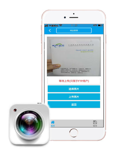 4、同時支持拍照上傳。可以將手機圖片或者拍照上傳。例如在添加商品圖片的時候,即可選擇拍照(要求使用FTP服務器)