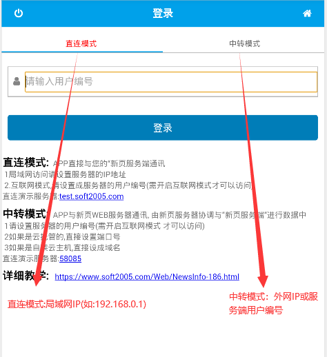 ① 安卓版的PDA分為兩種連接方式:1.直連模式 2.中轉(zhuǎn)模式