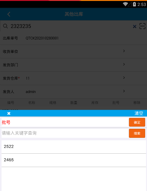 2、點(diǎn)擊上方圖片中的數(shù)量,就可以在彈窗中錄入出庫數(shù)量。