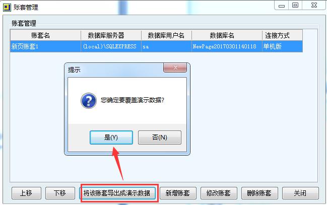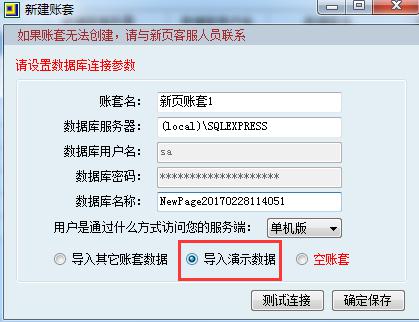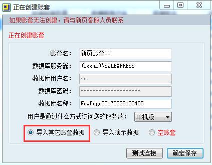 此操作會覆蓋原有的test數據,通過創建新賬套,導入演示數據,即可恢復舊賬套。