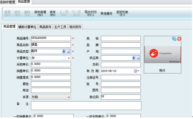 打開商品資料,商品資料界面上點擊照片按鈕,選擇圖片上傳即可