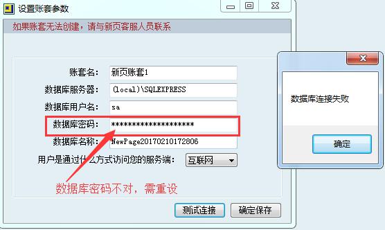 當賬套需要由單機版轉為互聯網或局域網連接,測試連接數據庫提示連接失敗。數據庫密碼忘記的情況下,需重新修改數據庫訪問密碼。