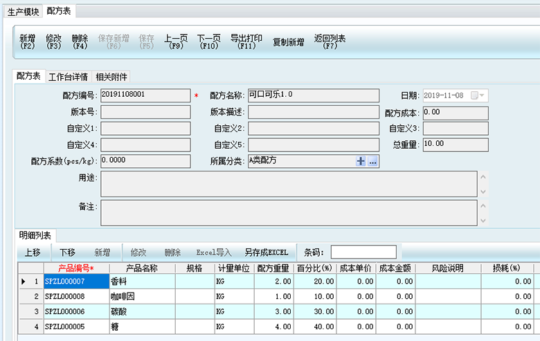 6、導入成功的配方表顯示如下