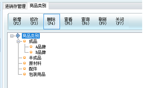 往下可以再細分,比如成品下面再劃分:品牌A,品牌B,如下圖: