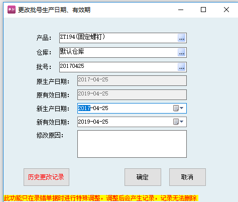 入庫(kù)時(shí)錄錯(cuò)生產(chǎn)日期和有效期,入庫(kù)商品已經(jīng)被引用不能反審核情況下,更改剩余產(chǎn)品的生產(chǎn)日期和有效期。會(huì)保留相關(guān)的更改記錄。