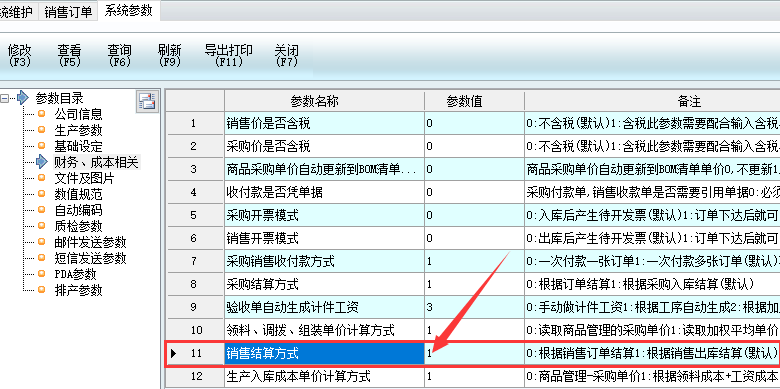 1:如果是做了銷售出庫再做收款的用戶,可以把參數值設置為1。