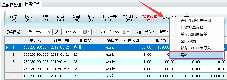 3、進銷存管理-銷售訂單-其他操作-導入
