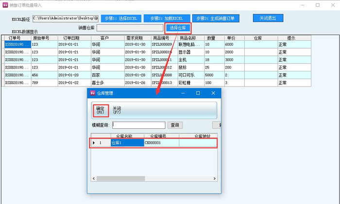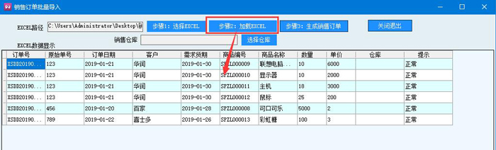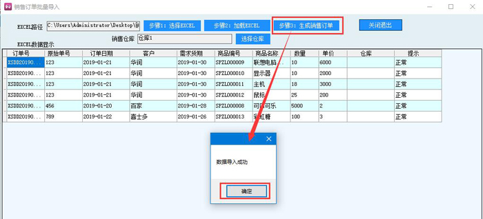 7、點擊步驟3:生成銷售訂單,提示數據導入成功,點擊確定