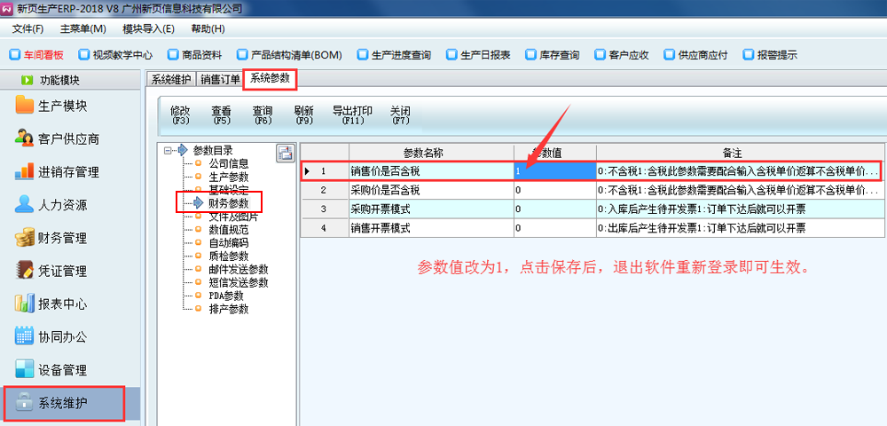 1、先在系統(tǒng)維護(hù)-系統(tǒng)參數(shù)-財務(wù)參數(shù),銷售價是否含稅,把參數(shù)值改為1,點擊保存,然后退出軟件重新登錄即可生效。