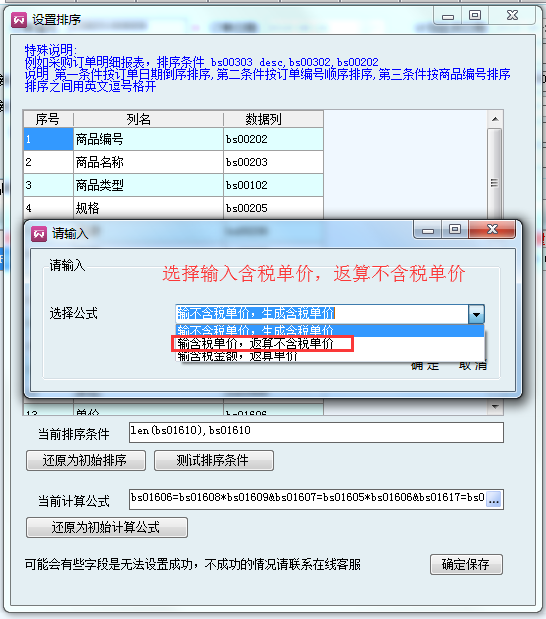 4、在彈出的窗口中選擇輸入含稅單價,返算不含稅單價,然后點擊確定,保存。這樣就設(shè)置好了。
