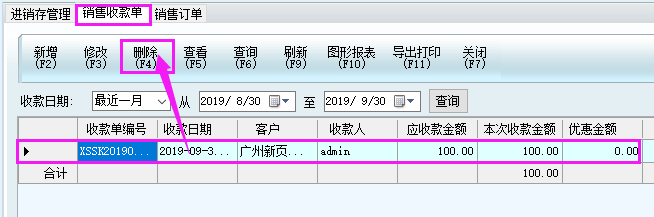此時,銷售出庫單和銷售收款單都已刪除了,該銷售訂單就可以刪除了,