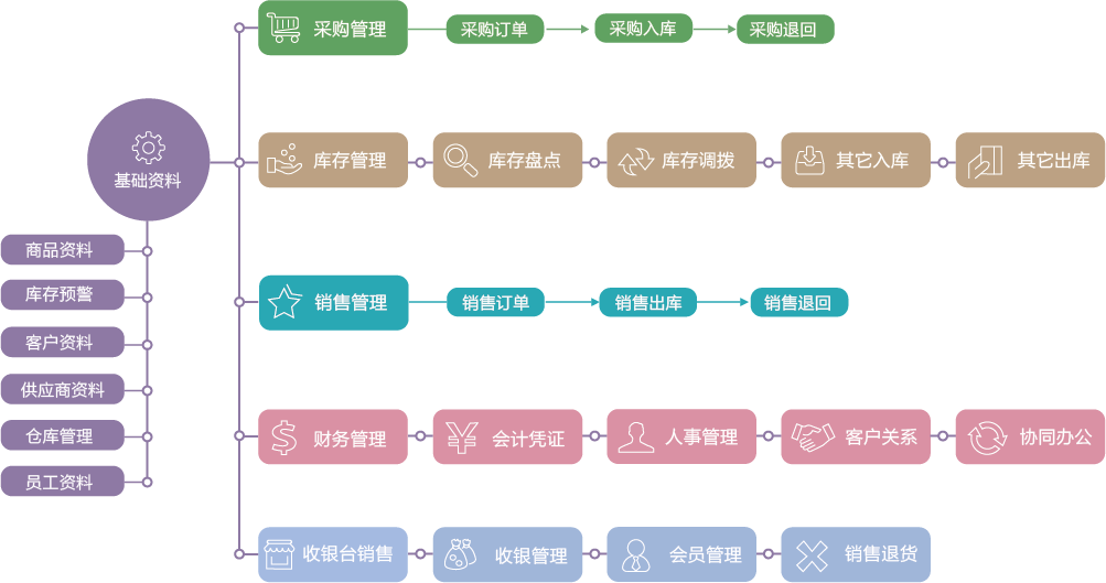 軟件基本覆蓋整個公司的管理,一個軟件即可以管理整個公司;