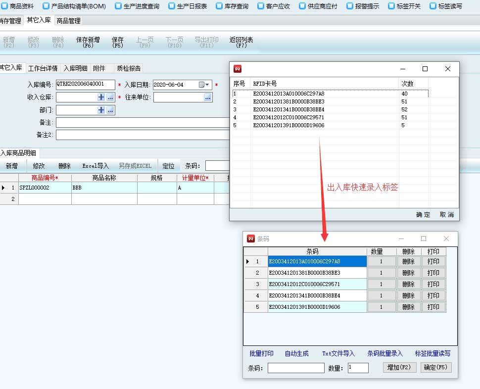 “新頁RFID”可以幫助使用ERP唯一碼追溯版的用戶們,使用讀寫器同時讀取多個標簽出入庫內容,以此來提高工作效率與準確性。