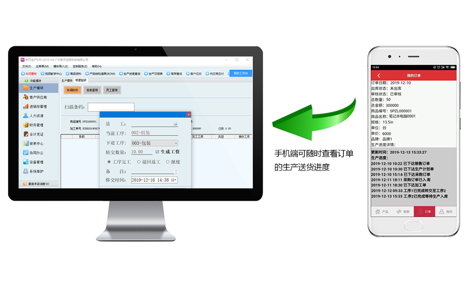 2、訂單執行過程可視化,可根據需要,為訂單客戶提供生產進度查詢,提升企業服務體驗;